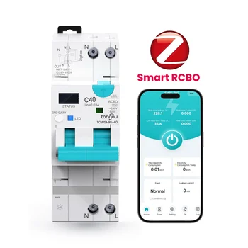 Zigbee Tuya Type AC Smart RCBO 40A 30mA 2P Remote Control Smart Power Consumption for Smart Home Leakage Protection TONGOU