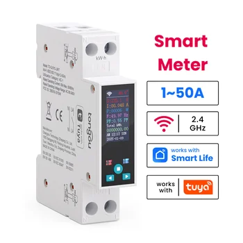 TUYA WiFi DIN Rail Smart Meter Electricity Meter Smart Home 1P+N Energy Monitoring Remote Control 50A Program Breaker TONGOU